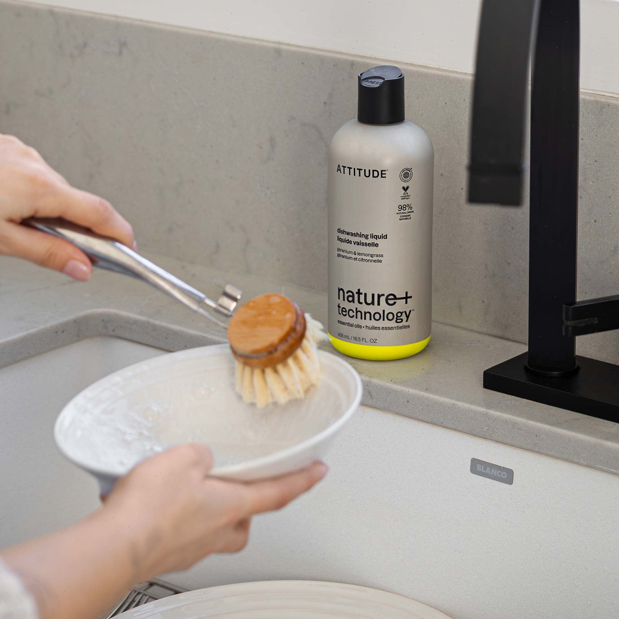 Say goodbye to grease and residues with our essential-oil infused dish soap. Made with 98% naturally derived ingredients, its EWG Verified® foaming formula combines plant-powered degreasing strength with gentleness for your hands, to deliver sparkling clean dishes.