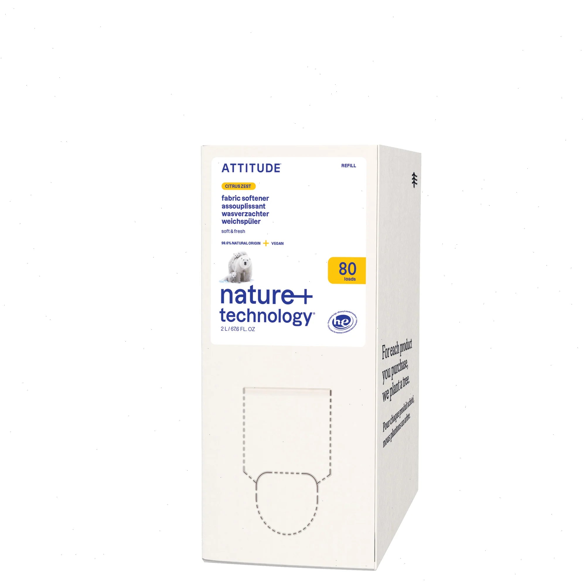 Formulated with 98% naturally derived ingredients, ATTITUDE™ fabric softener leaves your clothes feeling gentler, fresher and more comfortable. Its invigorating citrus top notes blend harmoniously with floral and herbaceous lavender. The bottle is made from HDPE #2 plastic—the easiest plastic to recycle—and can be reused again and again thanks to our innovative eco-refills. Its vegan formula is offered in a 2 L eco-refill format that’s easy to carry and use at home. Gentle on both your skin and the planet.