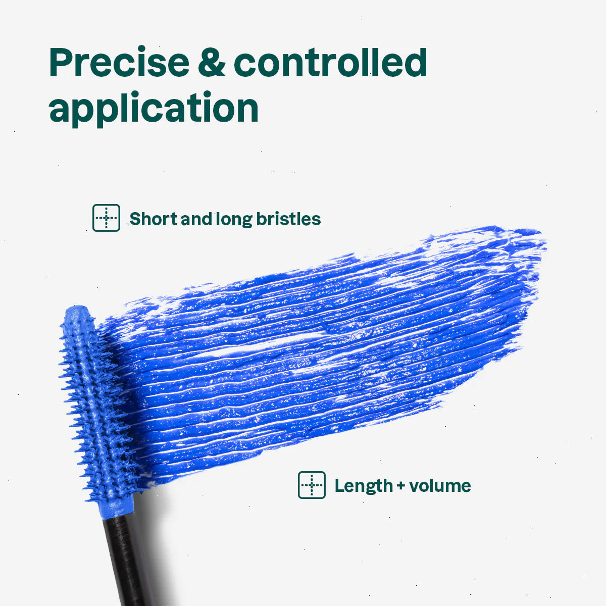 Place the brush at the base of lashes and gently sweep from root to tip to stretch each lash upward and outwards. Repeat until desired volume and length achieved.