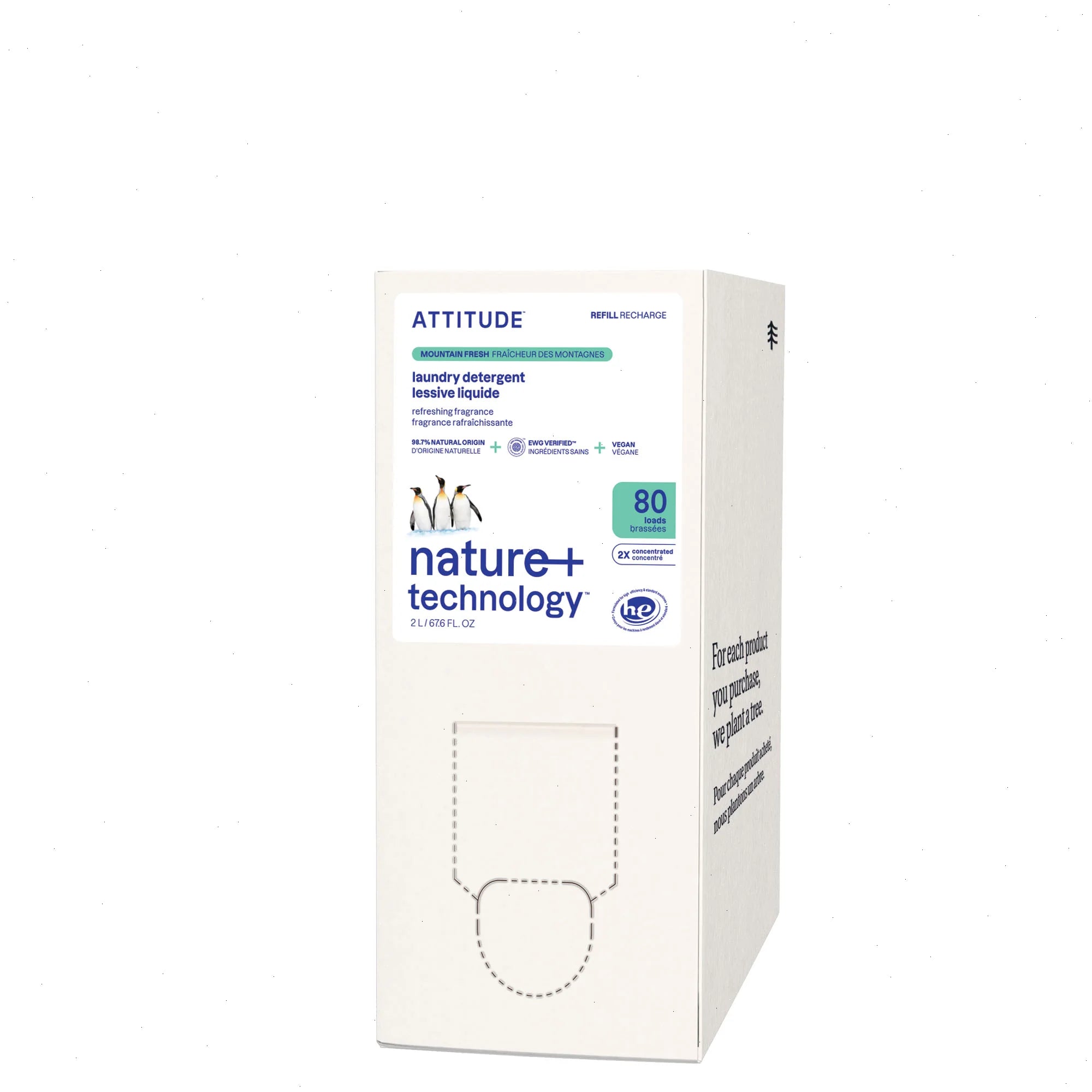 Formulated with 98% naturally derived ingredients, ATTITUDE™ laundry detergent packs excellent detergent power and is free of enzymes. Its aldehyde notes blend perfectly with freesia to create an airy floral blend matched with a mildly sweet combination of almond and vanilla. This blend will envelop your laundry in a fresh and comforting fragrance. Its concentrated formula allows you to do more loads while using the same amount of detergent. Our laundry detergent is effective for cold water wash, saving you energy. Its vegan formula is EWG VERIFIED™ and certified by PETA and is offered in a 2 L eco-refill format that’s easy to carry and use at home.
